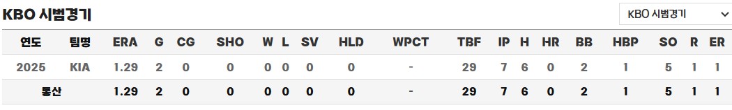 ◎ 25시즌 KBO 한국프로야구 시범경기 성적