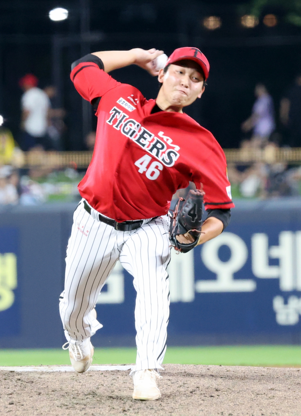 그리고 8월 20일, 광주에서 열린 키움 히어로즈와의 경기에서 김정엽은 드디어 1군 무대 데뷔전을 치르게 됩니다. 9회초에 등판한 그는 강한 구속과 안정적인 제구력을 바탕으로 세 타자를 모두 범타로 처리하며 깔끔하게 이닝을 마무리합니다. 1군 첫 등판에서 삼자범퇴로 데뷔전을 성공리에 마친 김정엽은 팬들에게 강한 인상을 남겼습니다.