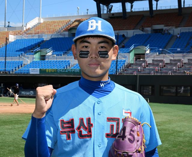 이듬해인 2023년에는 팀의 중심 투수로 자리 잡아 더욱 안정된 모습을 보였습니다. 평균 구속은 140km 초중반, 최고 구속은 145km를 기록하며 꾸준한 발전을 이뤘습니다. 특히 주말리그 전반기 부산공고와의 경기에서는 8이닝 동안 2실점(비자책)의 호투로 팀을 승리로 이끌었고, 황금사자기 대회에서는 세광고를 상대로 7⅔이닝 무실점을, 선린인고를 상대로는 6이닝 12탈삼진 3실점으로 에이스 원상현의 공백을 완벽히 메우며 팀의 창단 첫 황금사자기 우승을 이끌었습니다.