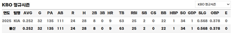 2025시즌 들어 위즈덤은 32경기에 출전해 타율 0.252, 28안타, 9홈런, 34삼진을 기록하며 다소 아쉬운 타율에도 불구하고 장타력만큼은 여전히 위협적인 모습을 유지하고 있습니다. 타율 외의 다른 지표들, 특히 홈런 생산력과 OPS 면에서는 KBO 리그 상위권 수준을 보여주고 있으며, 시즌이 진행될수록 적응도를 높여갈 것으로 기대되고 있습니다.