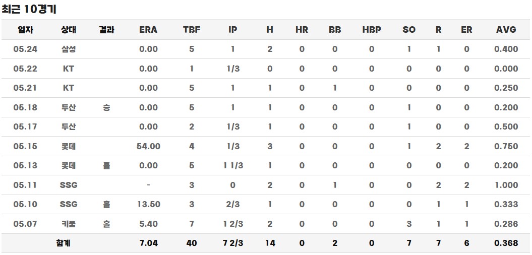 2025시즌 들어서는 총 26경기에 출전해 20과 2/3이닝을 소화하며 3승 2패, 7홀드, 평균자책점 5.23을 기록하고 있습니다. 아직까지는 기복이 존재하며, 전체적으로는 더 나은 퍼포먼스를 위한 발전이 필요한 상황입니다. 하지만 여전히 팀 내에서는 중요한 불펜 자원으로 평가받고 있으며, 구위와 제구의 조화를 좀 더 다듬는다면 필승조에서 확실한 역할을 수행할 가능성이 큽니다.