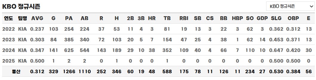 김도영은 2022년 KIA 타이거즈에 1차 지명으로 입단한 대한민국의 야구 선수로, 뛰어난 능력으로 빠르게 주목받고 있습니다. 그는 KIA 타이거즈에서의 첫 경기를 2022년 4월 2일 LG 트윈스와의 경기에서 치렀으나, 첫 경기에서는 4타수 무안타에 그쳤습니다. 그러나 그 이후 빠르게 성장하며 2024 시즌에는 눈부신 활약을 펼쳤습니다.