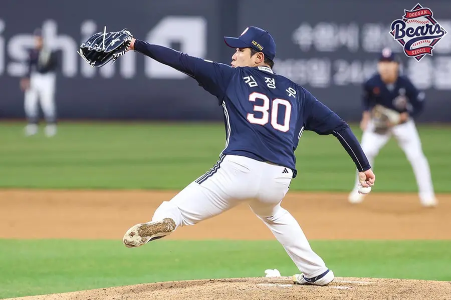 제대 후 2022시즌에는 등번호를 12번으로 바꾸며 복귀했지만, 시즌 중 1군에 콜업되었음에도 등판 기회를 얻지 못한 채 다시 말소되는 아쉬움을 겪었습니다. 그 해는 김정우 선수에게 있어서 한 차례 전환점이 찾아오는 해이기도 했습니다. 2023년 5월 25일, SSG 랜더스에서 두산 베어스로 트레이드되며 새로운 팀에서의 기회를 얻게 됩니다. 이 트레이드는 강진성과의 1:1 맞트레이드였고, 당시 두산 프런트는 김정우 선수가 젊고 군 복무를 마쳤으며, 2군에서의 성적도 안정적이라는 점에서 장기적으로 팀에 보탬이 될 수 있는 자원으로 평가했습니다. 실제로 그 시점에서 퓨처스리그에서는 평균자책점 1.84를 기록하며 좋은 흐름을 타고 있었고, 최고 구속 148km/h를 기록할 정도로 잠재력을 보여주고 있었습니다.