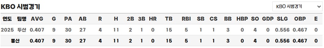◎ 통산 시범경기 성적
