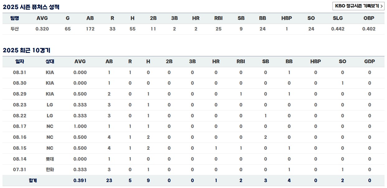 2025.06.10 - [야구김감독] - 두산 여동건 프로필|나이|연봉|타율|계약금|키|군대|가족|고향