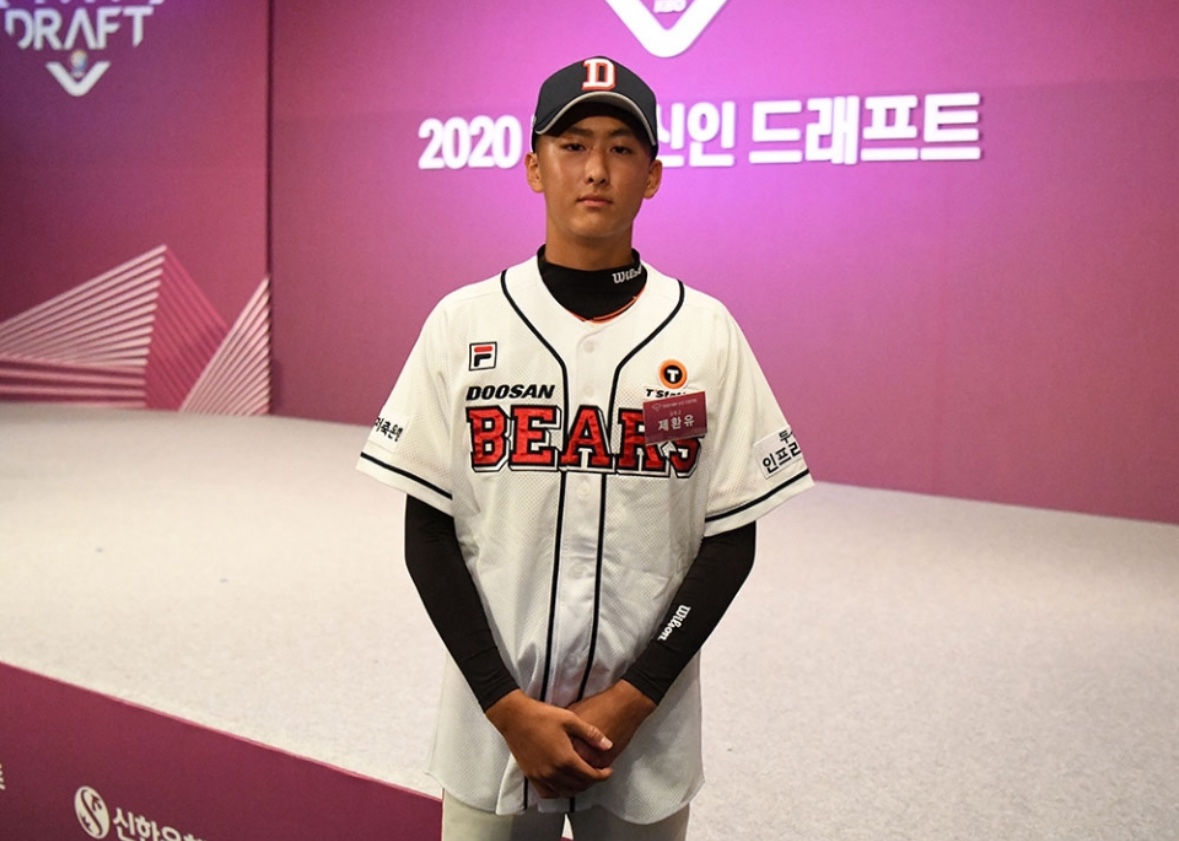 제환유 선수는 두산 베어스 소속의 우완 투수로, 특별한 성장 서사를 지닌 유망주입니다. 대전둔산초등학교 재학 시절, 학교에 야구부가 없어 야구를 시작하기 어려운 환경이었지만, 유성리틀야구단에 가입하며 본격적인 야구 인생을 시작했습니다. 야구 초기에는 왜소한 체격으로 인해 투수가 아닌 외야수 및 내야수로 활동했고, 키가 작아 한 해를 유급하기도 했습니다. 그러나 고교 진학 이후 체격이 빠르게 성장하면서 투수로 전향하였고, 점차 구속을 끌어올리며 3학년 때에는 최고 143km/h를 기록하는 등 발전 가능성을 인정받았습니다. 특히 2019년에는 13경기에서 1승 1패, 평균자책점 1.76이라는 준수한 성적을 남기며 북일고를 상대로 5⅓이닝 8탈삼진 1실점이라는 인상적인 피칭을 선보였습니다. 이처럼 투수로서 본격적인 재능을 발휘하게 되자, 제환유는 2020 KBO 신인 드래프트에서 두산 베어스의 2라운드 지명을 받으며 프로 무대에 입성하게 됩니다.
