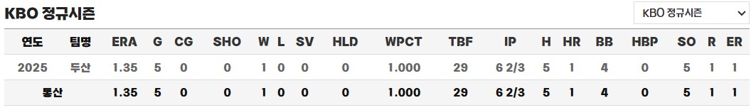 2025.04.18 - [야구김감독] - 콜 어빈 프로필|나이|국적|연봉|두산베어스|구속|성적|결혼|키