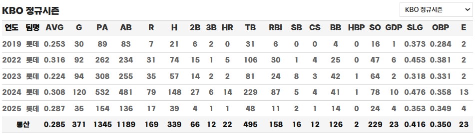 2025.04.26 - [야구김감독] - 롯데 윤동희 프로필|나이|연봉|군대|계약금|고향|결혼|여자친구