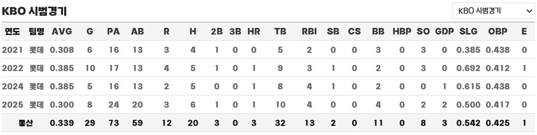 ◎ 통산 시범경기 성적