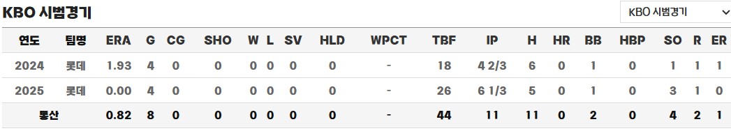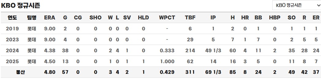 2024 시즌 초반, 4월에는 부진한 모습을 보이며 아쉬움을 남겼지만 5월 이후 조금씩 안정감을 되찾았습니다. 특히 6월에 들어서면서는 불펜에서의 활약이 돋보였습니다. 6월 9일 SSG와의 더블헤더 1차전에서는 2이닝 무실점 피칭을 선보였고, 6월 14일 LG전에서는 위기 상황에서 등판해 3이닝을 책임지는 활약으로 롱릴리프의 진가를 발휘했습니다. 이후에도 연투를 소화하며 팀의 불펜 부담을 줄였고, 연속 무실점 행진을 이어가며 점차 신뢰를 쌓아갔습니다.
