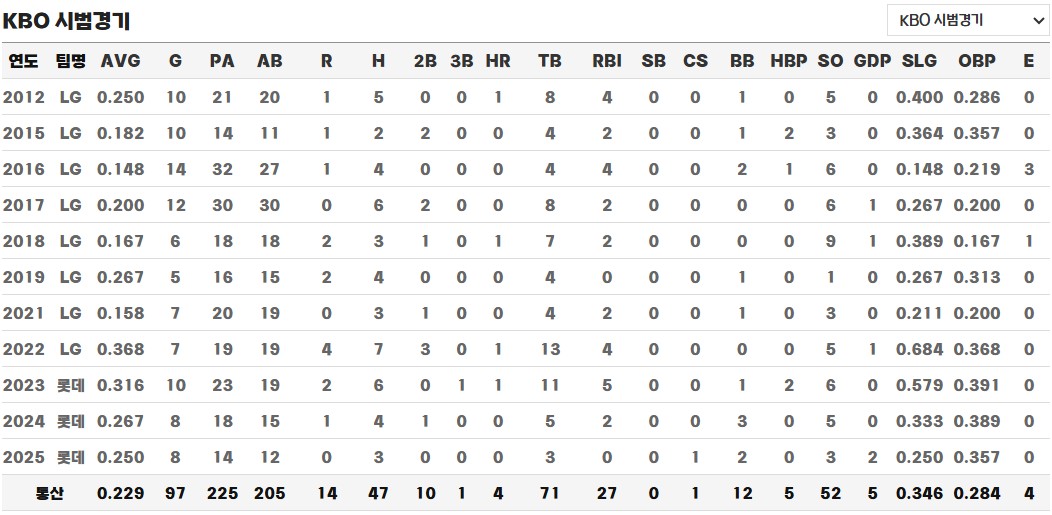 ◎ 통산 KBO 시범경기 성적 / 기록