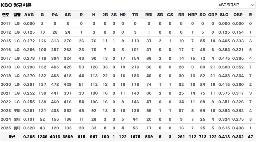 ◎ 통산 KBO 성적 / 기록