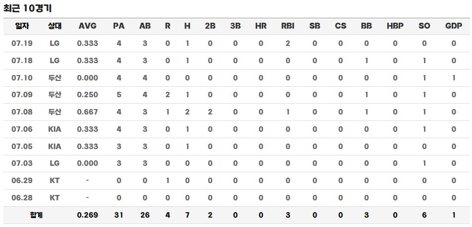 7월 올스타 브레이크 이후에는 1군에서 말소되었으나, 8월 10일 팀 내 코로나 이슈로 다시 1군에 콜업되어 대주자 및 대타로 활약하며 득점과 안타를 기록했습니다. 이후 U-23 대표팀에 선발되었으며, 조세진, 윤동희와 함께 상무 최종 합격 명단에도 이름을 올려 군 복무를 위해 상무에 입단하게 됩니다.