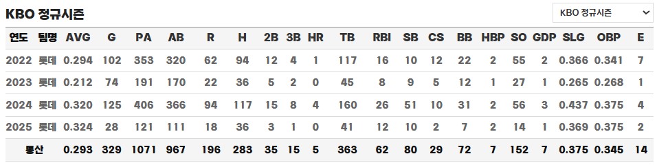 2025.04.20 - [야구김감독] - 롯데 전민재 프로필|나이|연봉|헤드샷|군대|고향|결혼|복귀 시점