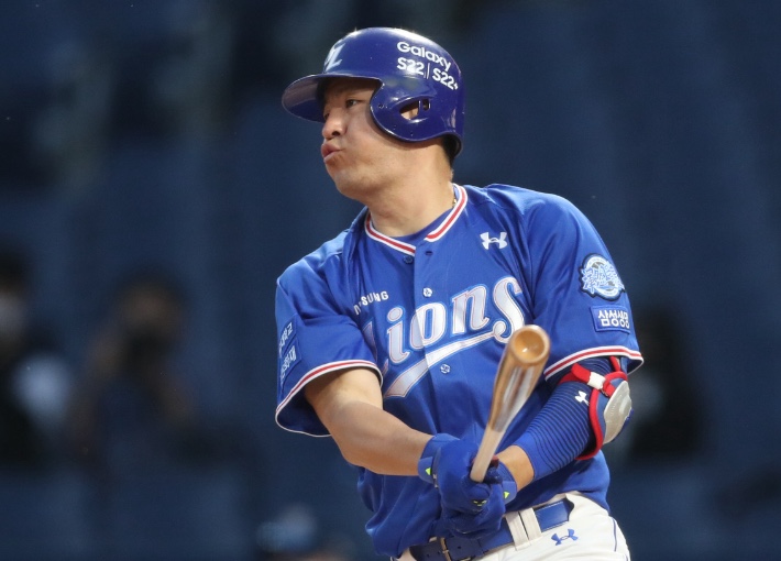 2018년 FA를 통해 4년 80억이라는 금액으로 삼성 라이온즈에 이적하면서 팬들 사이에서 화제를 모았고, 롯데 시절의 활약에 비해 초반에는 부진한 성적으로 많은 비판을 받았습니다. 하지만 2020년을 기점으로 타격감을 서서히 회복하며 주전 포수로서 다시금 제 몫을 해냈고, 2021년과 2024년에는 삼성 유니폼을 입고 골든글러브를 수상하며 반등에 성공했습니다. 특히 2024년은 본인의 39세 시즌임에도 불구하고 극적인 회춘을 보여주며 젊은 선수들 사이에서도 중심을 잡아주는 베테랑으로서 팀에 귀중한 존재로 자리하고 있습니다.