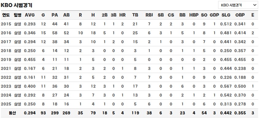 ◎ 통산 KBO 시범경기 성적 / 기록