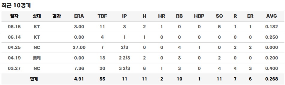 2025 시즌 현재까지 5경기에서 11이닝을 소화하며 평균자책점 4.91을 기록하고 있습니다. 구위는 분명 매력적이며, 변화구의 완성도와 경기 운영 능력도 점차 나아지고 있으나, 사사구 억제와 스트라이크 존 관리가 향후 1군 정착의 핵심 과제가 될 것으로 보입니다. 아직은 다듬어야 할 부분이 많지만, 꾸준한 기회와 경험이 주어진다면 향후 삼성의 중요한 선발 자원으로 성장할 가능성도 충분한 선수입니다.