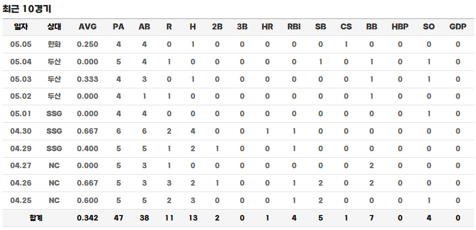 2025시즌 초반 김성윤은 다시 한 번 반등에 성공한 모습입니다. 시즌 초 35경기에 출전해 타율 0.345, 안타 38개, 홈런 2개, 15타점, 도루 10개를 기록하며 1번 타자 역할을 훌륭히 수행하고 있습니다. 하위타선에서 머물던 과거와 달리 이번 시즌에는 상위타선에서 활약하면서 존재감을 드러내고 있으며, 자신이 가진 빠른 발과 컨택 능력을 활용해 팀 공격의 활로를 여는 중요한 역할을 하고 있습니다.