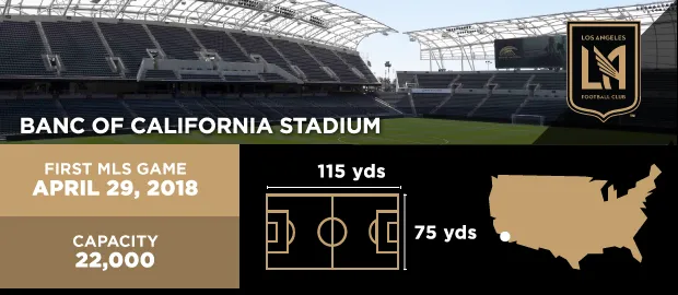 LA FC의 홈구장은 BMO 스타디움 (구. 뱅크 오브 캘리포니아 스타디움)입니다. 이 경기장은 로스앤젤레스의 엑스포지션 파크에 위치해 있으며, 약 22,000석 규모의 축구 전용 구장입니다. 2018년에 완공되었으며, 최신식 시설과 팬 친화적 구조로 MLS 내에서도 가장 분위기 좋은 경기장 중 하나로 손꼽힙니다.