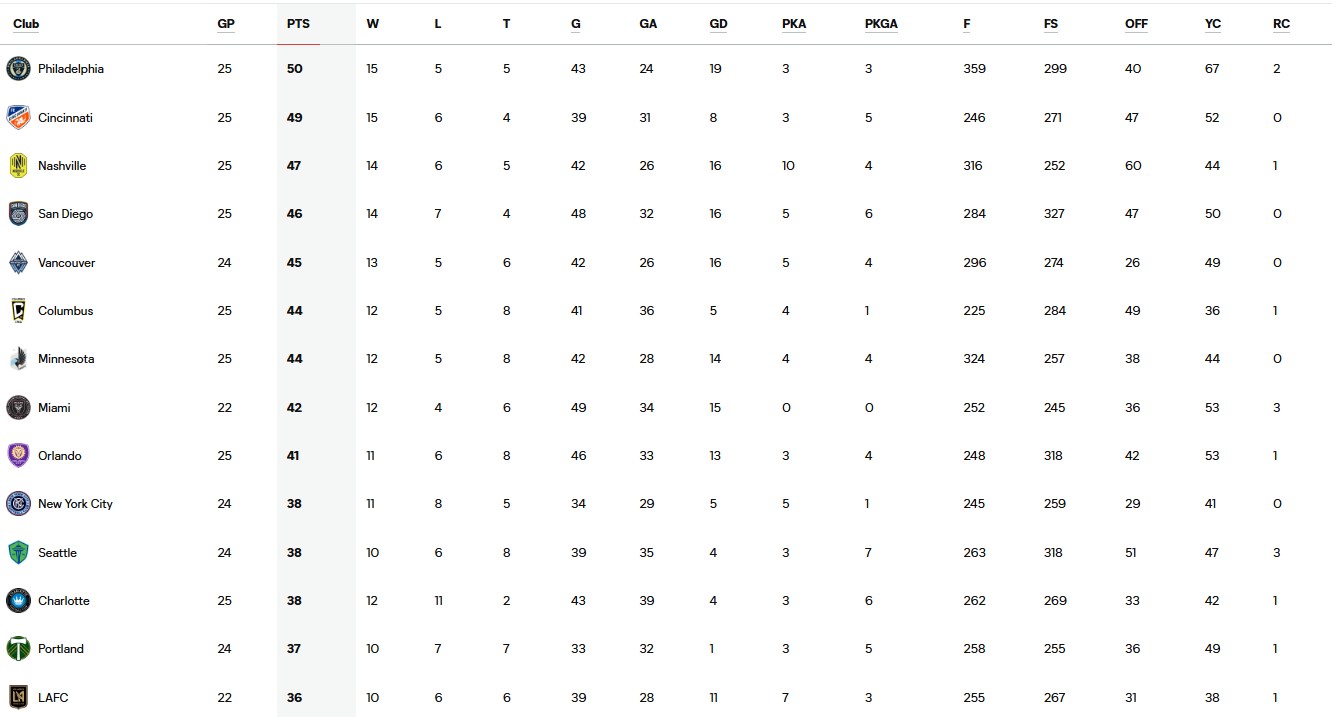 2025년 현재 메이저 리그 사커 (MLS) LA FC 순위