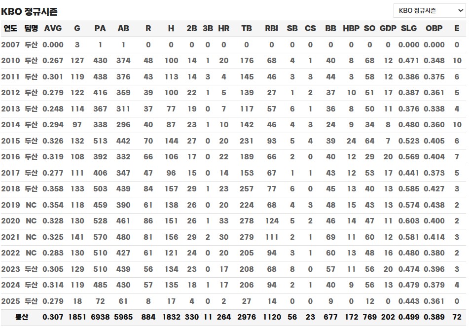 25번 – NC에서 친정인 두산베어스로 복귀하면서 25번을 쓰고 있습니다.