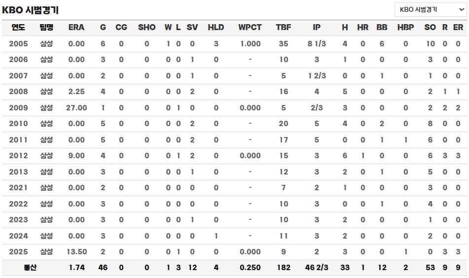 ◎ 통산 시범경기 성적 / 기록