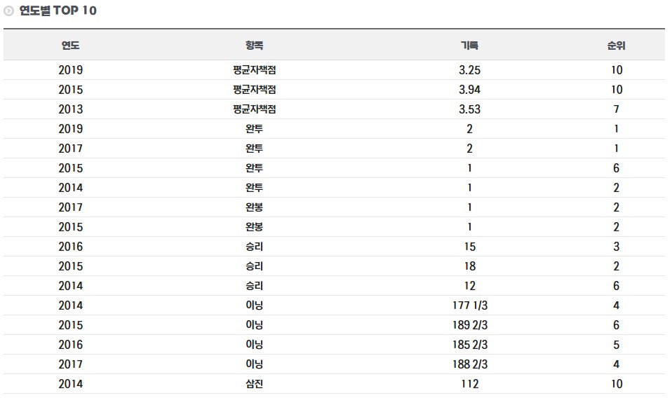 ◎ KBO 연도별 TOP 10