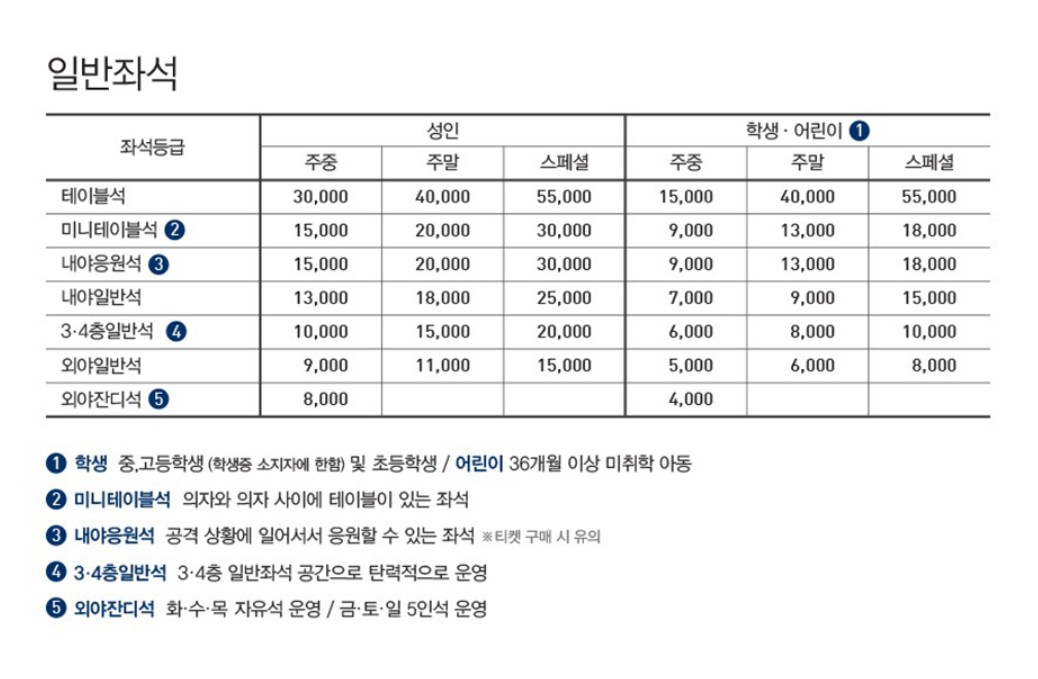 ◆ 창원 NC 파크 좌석표 입장권 가격 / 입장 요금