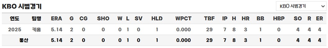 ◎ 2025년 시범경기 성적