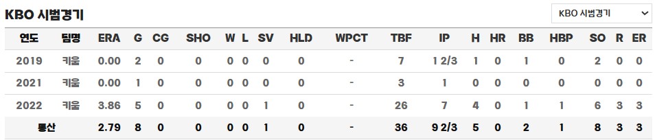 ◎ 통산 KBO 시범경기 성적 / 기록