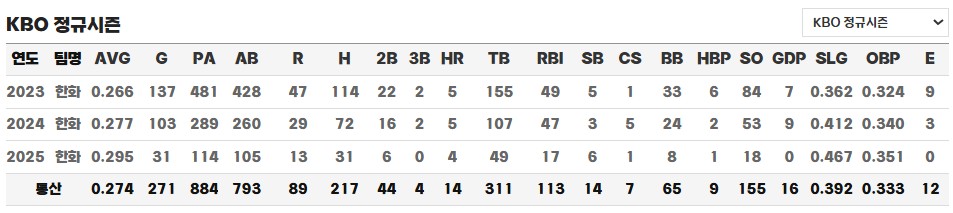 2025년 시즌 초반, 그는 31경기에서 31안타를 기록하며 타율 .295, 홈런 4개의 성적을 거두며 한화 이글스의 상승세에 큰 힘을 보태고 있습니다. 이러한 꾸준한 활약은 그가 단순한 기대주가 아닌, 팀의 중심 전력으로 성장하고 있음을 보여주는 증거입니다.