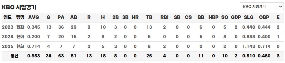 ◎ 통산 시범경기 성적