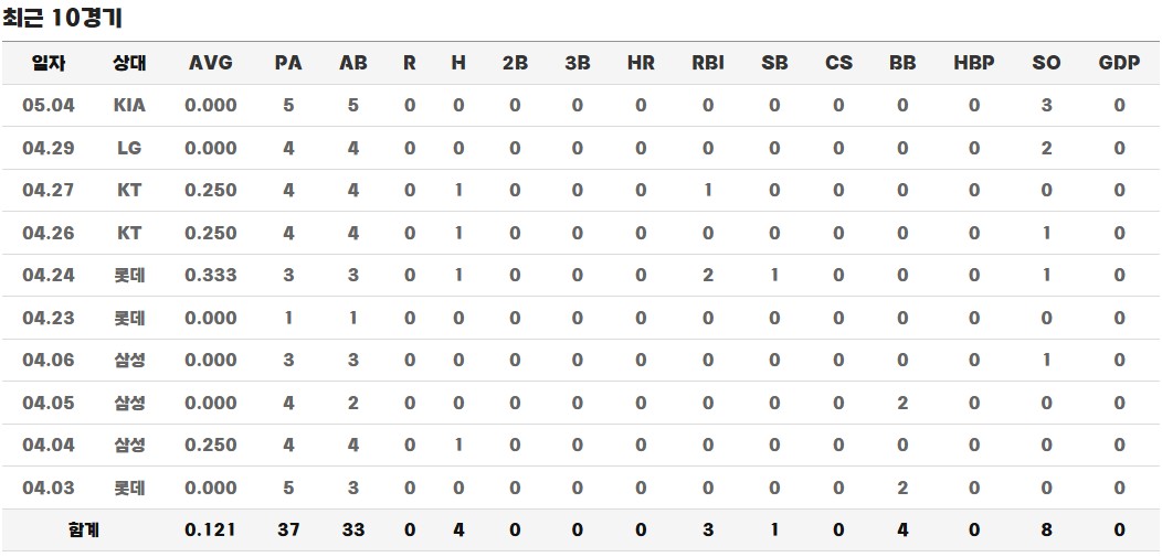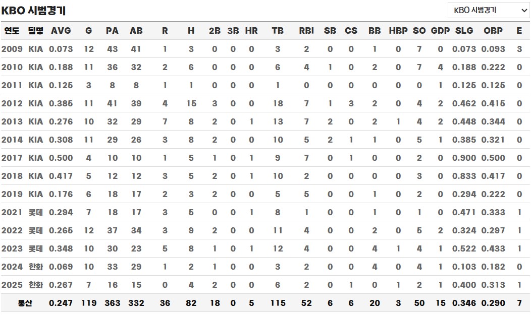 2025시즌, 그는 일시적으로 1군에서 자취를 감추었지만 2군에서는 여전히 4할이 넘는 타율로 타격감을 유지하며 자신의 리듬을 되찾기 위해 노력하고 있습니다. 1군에서의 저조한 타율은 분명 아쉬운 부분이지만, 누구보다 성실하고 준비된 선수인 그가 다시 자신의 페이스를 끌어올릴 수 있으리라는 기대는 여전합니다. 슬로우 스타터 기질, 성격적인 예민함, 슬럼프 때의 기복 등은 오히려 그가 얼마나 인간적인 선수인지를 보여주는 요소이기도 합니다. 그는 단순히 숫자로만 평가할 수 없는 무게감과, 팀 내에서의 정신적인 존재감을 함께 갖춘 선수입니다. 베테랑으로서 젊은 선수들에게 귀감이 될 수 있는 그가 다시 1군 무대에서 경쾌한 스윙을 보여주고, 팀 타선의 중심에서 건재함을 과시하길 바랍니다.