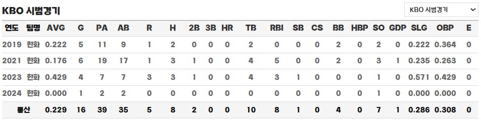 ◎ 통산 KBO 시범경기 성적 / 기록