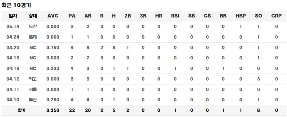 2025 시즌에는 2군에서 4할대의 타율을 기록하며 반등의 가능성을 보였고, 심우준 선수의 부상으로 인해 1군에 콜업되었습니다. 이후 백업 내야수로 경기에 출전하고 있으며, 현재 8경기에서 타율 0.250, 22타석 5안타, 1타점, 2득점을 기록 중입니다. 이번 시즌은 하주석 선수에게 사실상 FA 재도전을 위한 마지막 기회로 여겨지고 있으며, 성적에 따라 선수 커리어 전체의 향방이 달라질 수 있습니다.