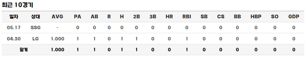 5월 17일 더블헤더 특별 엔트리를 통해 다시 콜업되었고, 대수비로 출전해 안정적인 리드를 선보였습니다. 이후 6월 10일에는 퓨처스리그 경기에서 한 경기 3홈런을 때려내며 폭발적인 타격감을 과시했고, 다음 날인 6월 11일 첫 타석에서도 홈런을 기록해 퓨처스리그 역사상 3번째로 4연타석 홈런을 기록하는 진기록을 세웠습니다.