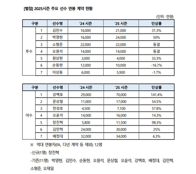 2025년 프로야구 KT 위즈 연봉 협상 완료|인상|삭감|케이티|계약