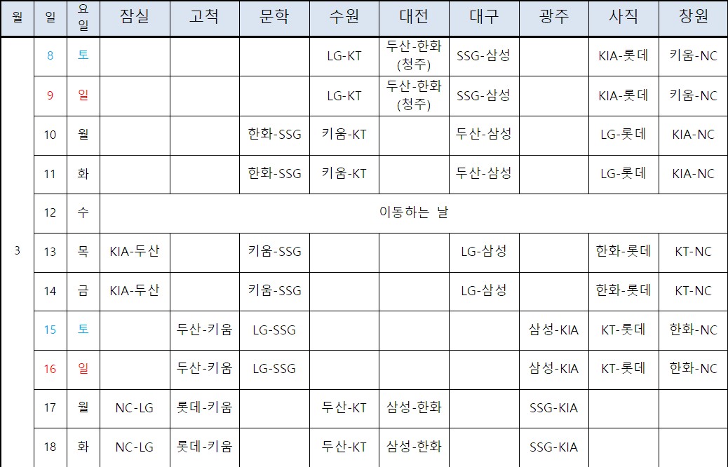 | 2025 프로야구 일정|정규 시즌 개막전|25시즌 대진표 일정|올스타전 (0) | 2025.03.02 |