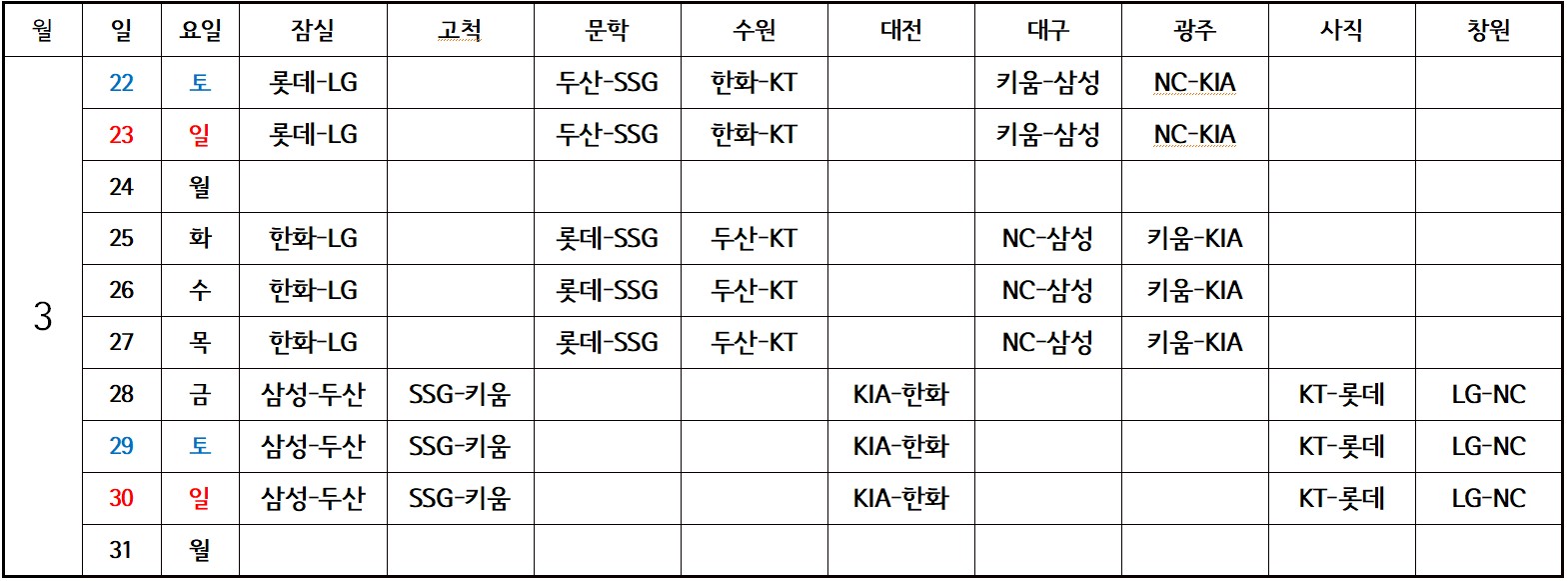 2025 프로야구 시범경기 개막|예매|일정|시범경기 대진표|시간 (0) | 2025.03.02 |