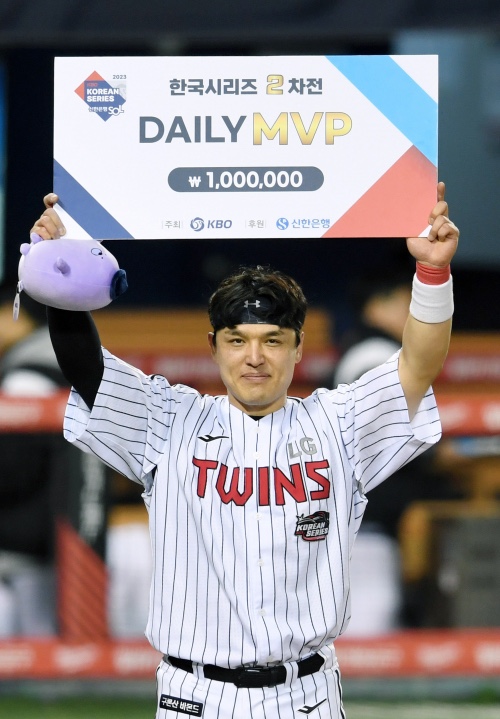 2023년 한국시리즈에서는 결승 역전 투런 홈런, 재역전 홈런 등 인상적인 활약을 이어가며 LG의 우승에 결정적인 역할을 했습니다. 이로써 ‘큰 경기에서 약하다’는 평가를 스스로 깨부수었고, 감독과의 약속으로 상금까지 받으며 한국시리즈의 숨은 MVP 중 하나로 꼽히게 되었습니다.