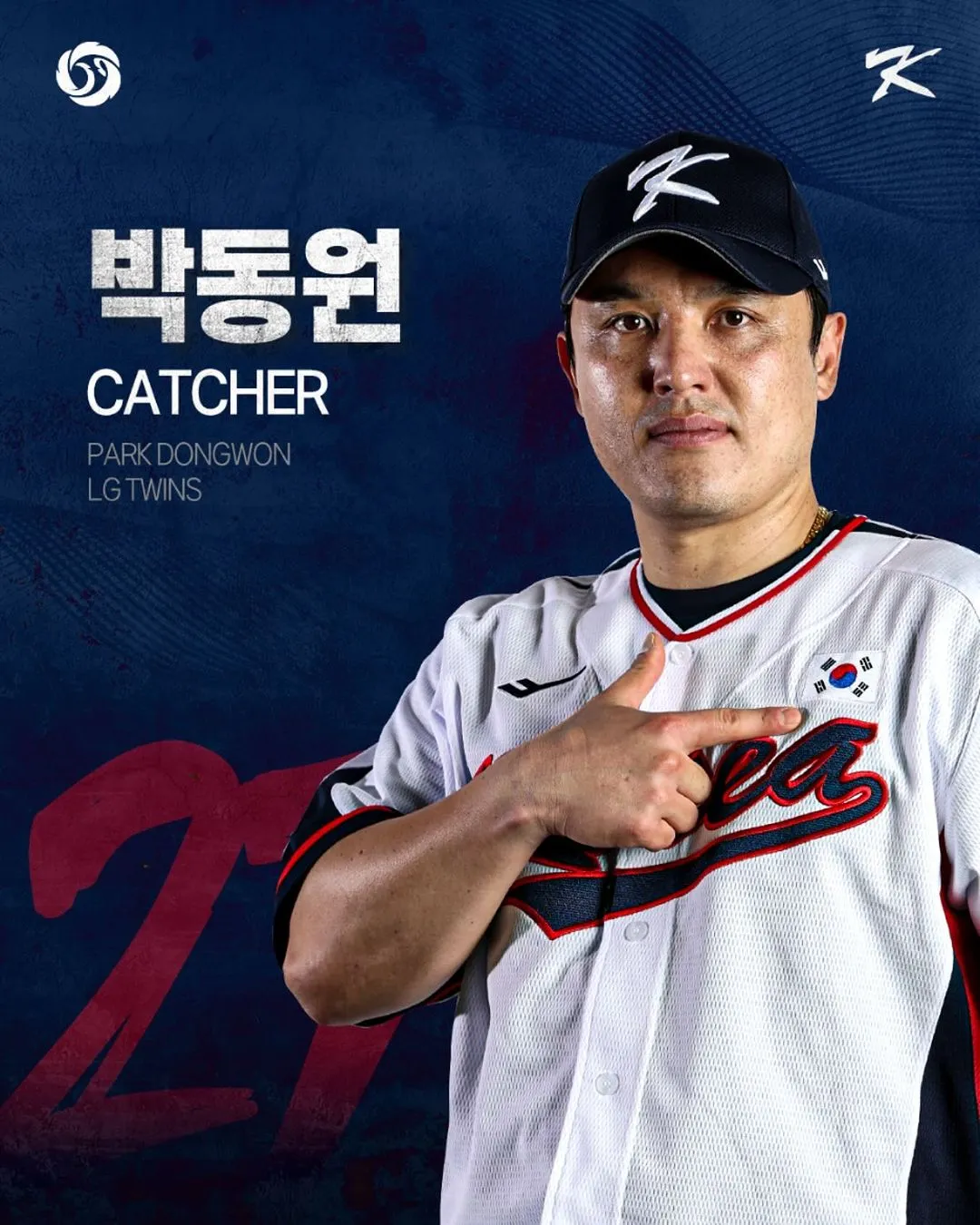박동원은 LG 트윈스 소속의 우투우타 포수로, 2023년 한국시리즈에서 맹활약하며 LG의 29년 만의 우승을 이끌어낸 주역 중 한 명입니다. 포스트시즌에서 결정적인 홈런들을 터뜨리며 팬들에게 깊은 인상을 남겼고, LG 팬들에게는 결코 잊히지 않을 소중한 기억을 선사했습니다.
