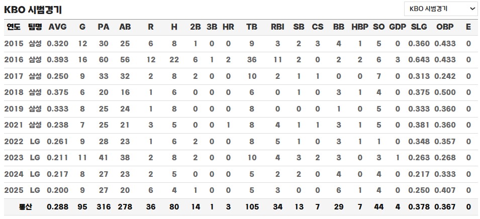 ◎ 통산 KBO 시범경기 성적 / 기록