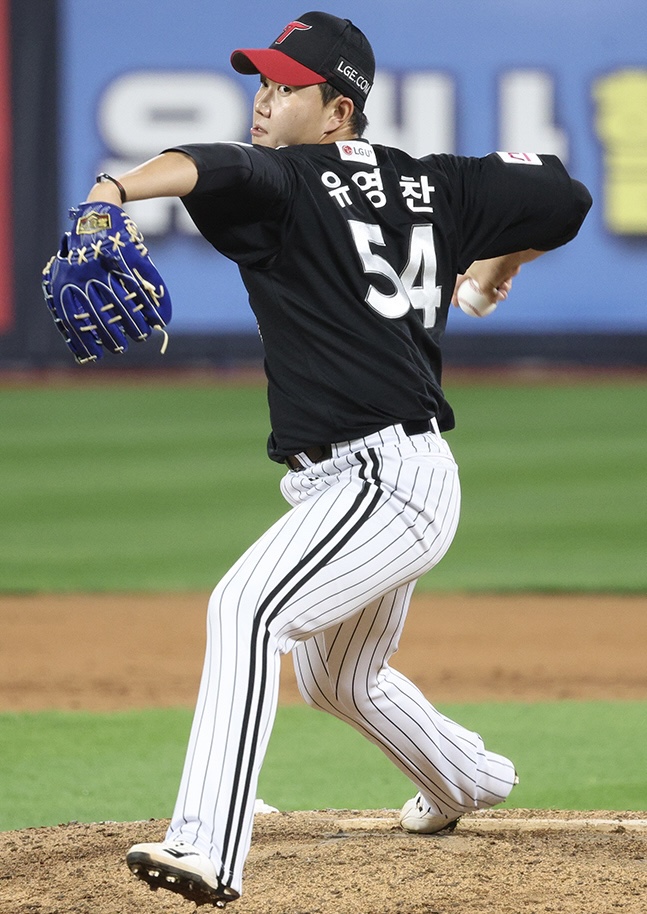 2024 시즌에는 메이저리그로 진출한 고우석의 빈자리를 메우기 위해 마무리 투수 역할을 맡았습니다. 시즌 전반기에는 김진성과 함께 확실한 필승조로 활약하며 좋은 성적을 남겼습니다. 하지만 후반기에는 과중한 등판과 피로 누적으로 인해 흔들리는 모습을 보였습니다. 시즌 종료 후 프리미어12 대회에 참가하였고, 귀국 후 구단의 메디컬 체크 결과 오른쪽 팔꿈치 주두골에 스트레스성 미세 골절이 발견되었습니다. 유영찬은 이를 치료하기 위해 12월 2일 정형외과에서 수술을 받았으며, 수술은 웃자란 뼈를 제거하는 방식으로 진행되었습니다. 재활 기간은 약 3개월로 예상되었습니다.