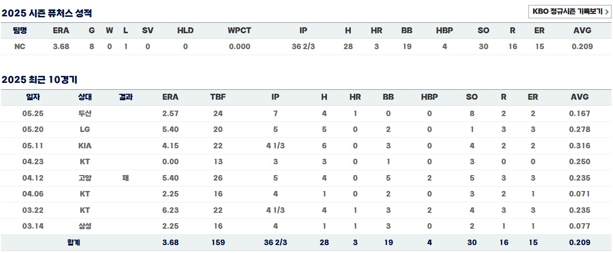 2025.05.14 - [야구김감독] - NC 최성영 프로필|연봉|고향|나이|계약금|성적|군대|결혼|키