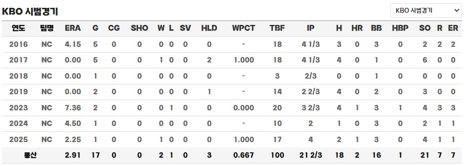 ◎ 통산 시범경기 성적 / 기록